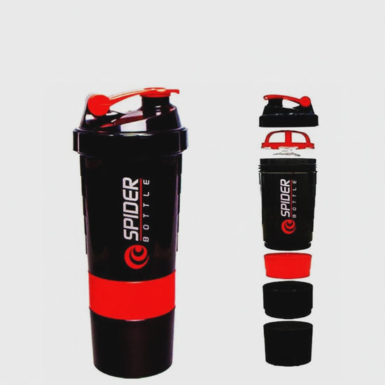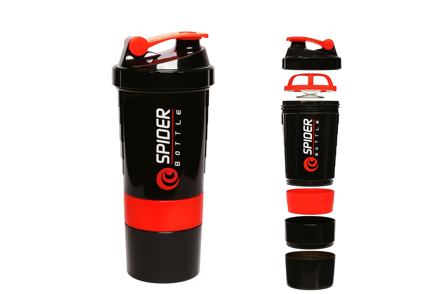 Spider Gym Protein Shaker Bottle | 500ml | Leak-Proof Mixer with 2 Storage Compartments